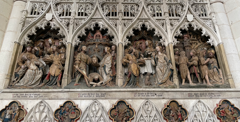 Although most of what was built and created in the fourteenth and early fifteenth centuries has been lost to time due to renovations of cities and the primitive structure of most buildings, we are lucky enough to experience a great wealth of culture and architecture that remains in France, giving us a glimpse into what life during the fourteenth and early fifteenth centuries may have looked like. Almost every medieval city in France is home to a cathedral or multiple cathedrals, each with its own unique and distinctive artistic and architectural design. Most cathedrals in existence today started construction in the late 13th century, the majority of what we see today being additions constructed in the 14th and early 15th centuries. What is paramount are the stories that the engravings, religious art, and stain glass windows tell us about the communities who constructed these cathedrals over many generations, and what they faced as a community and principality.